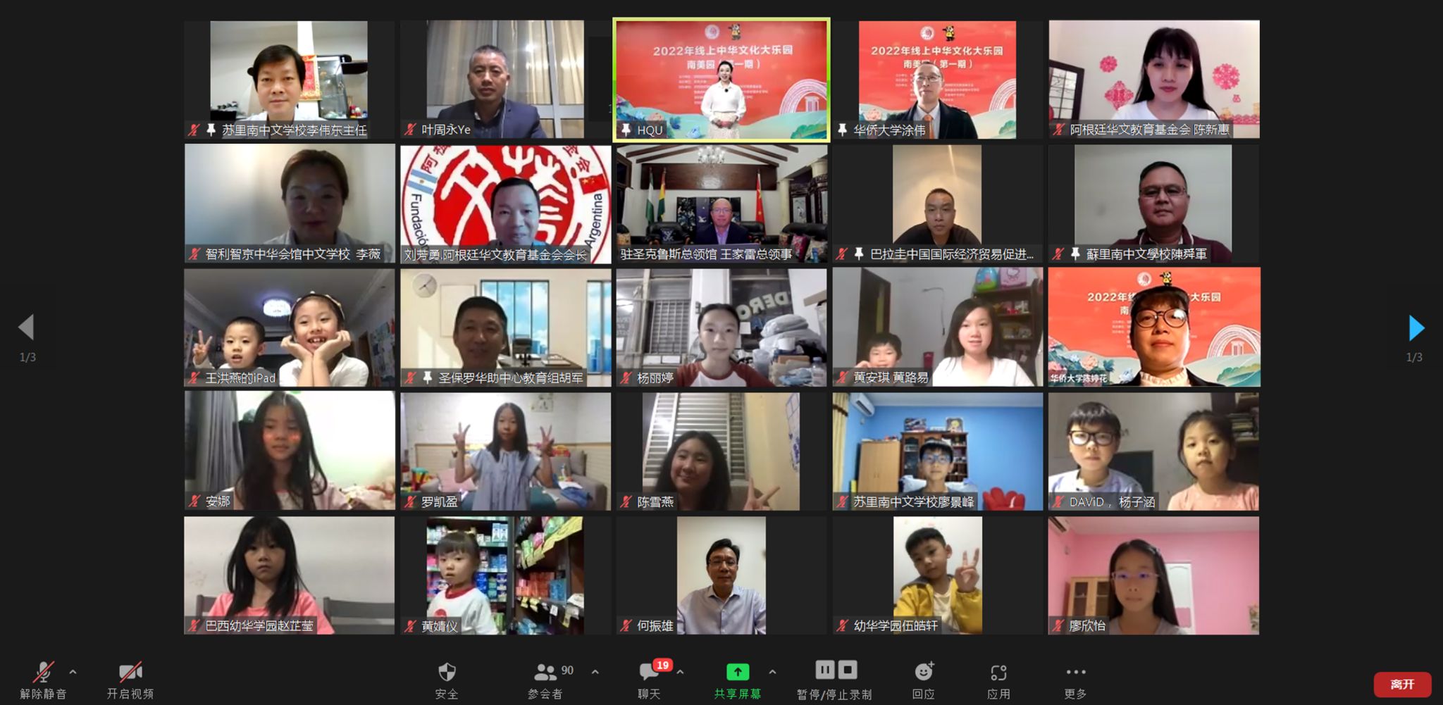 12月30日上午,为期12天的2022年线上“中华文化大乐园”南美园(第一期)举行闭园仪式及汇报演出,7国240位南美学员完成了既定的课程学习。