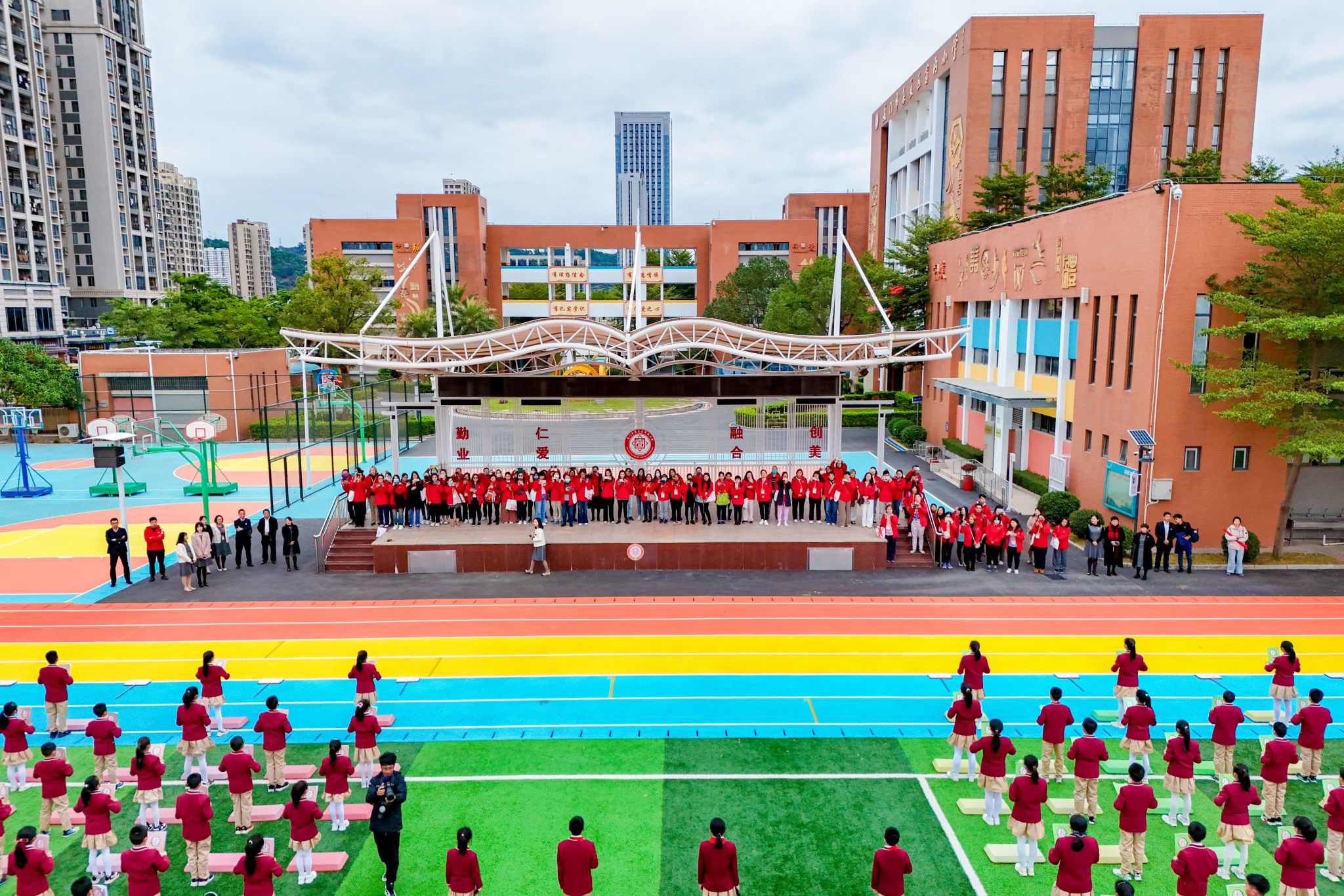 观摩集美窗内小学千人踏板操表演