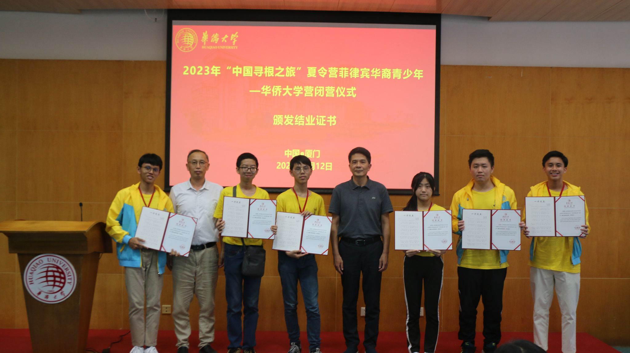 7月12日下午,由中国侨联主办,福建省侨联、华侨大学、泉州市侨联、厦门市侨联承办,菲律宾华教中心协办的2023年“中国寻根之旅”夏令营——菲律宾华裔青少年华侨大学营举行闭营仪式。厦门市侨联副主席杜瑞田、华侨大学华文教育处处长涂伟、厦门市侨联副秘书长朱东芹、厦门市侨联文化联络部三级调研员唐欣欣及相关负责人出席参与。