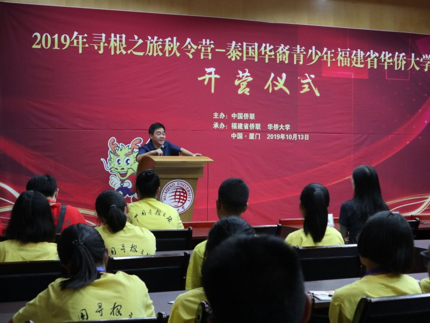 10月13日,由中侨联主办,福建省侨联、华侨大学承办的2019年“寻根之旅”秋令营——泰国华裔青少年福建省华侨大学营在厦门校区开营,来自集美学校泰国校友会、华泰教育交流中心组织的60余名华裔青少年以及海外领队开启了“寻根之旅”。